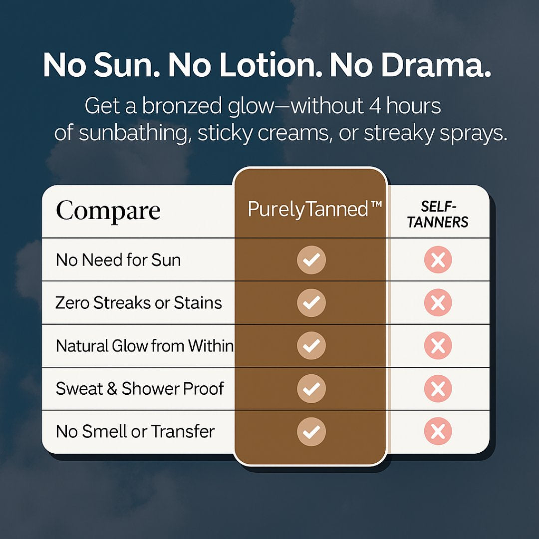Why spend hundreds on messy self-tanners, endless sunbeds, or skincare treatments? With PurelyTanned™, you can enjoy a natural, healthy glow all year for less than your daily coffee.
